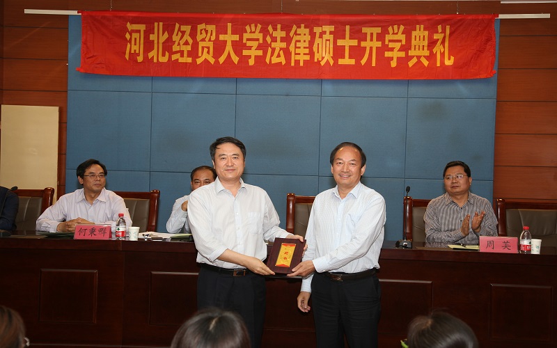 5月11日上午,我校在会议中心视频会议室举行2016级在职法律硕士开学典礼。校党委书记董兆伟,河北省司法厅党组副书记、副厅长王大为,河北省人民检察院副检察长何秉群,河北省人大法工委副主任周英,河北省人民政府学位办主任赵清云出席并致辞,校党委常委、副校长柴振国出席,研究生学院负责人等参加。典礼由36365线路检测中心入口院长郭广辉主持。