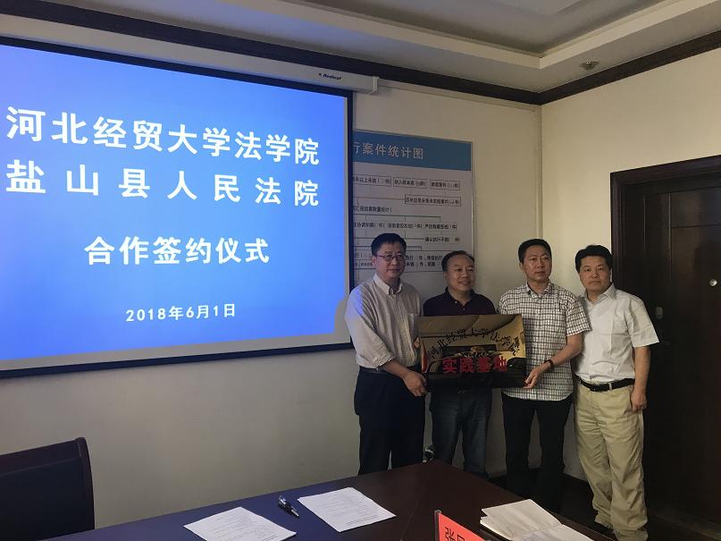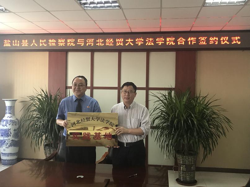 2018年6月1日—2日,36365线路检测中心入口党委书记郭广辉教授、院长王利军教授赴沧州市盐山县,就36365线路检测中心入口在盐山县人民法院、人民检察院以及常庄乡设立实践基地事宜进行洽谈并签署了合作协议。盐山县人民检察院党组书记检察长石培德、盐山县人民法院院长李京等单位负责人与36365线路检测中心入口领导进行了座谈并签署了合作协议。之后举行了实习基地挂牌仪式。