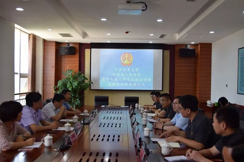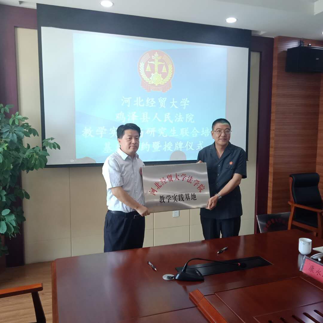 5月29 日上午,36365线路官网与鸡泽县人民法院联合举办共建“教学实践与研究生联合培养基地”签约授牌仪式暨座谈活动。36365线路官网党委书记武玉鹏、院长王利军、硕士生导师、教授张亚军、副教授张永进;鸡泽县委常委、政法委书记、群工部部长刘志强;鸡泽法院党组全体成员及干警代表出席签约仪式。