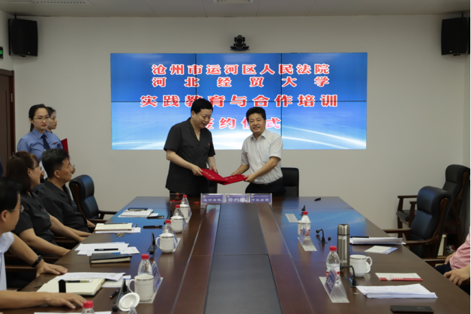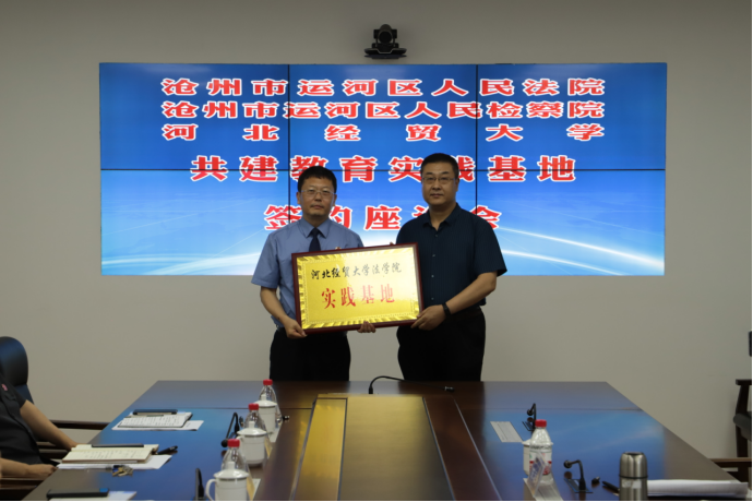 随后,王金瓯、李振勇分别代表运河区检察院、运河区法院与王利军签署了共建教育实践基地协议书。王继伟分别向王金瓯、李振勇授实践基地牌匾。签约授牌仪式结束后,与会人员就案件审理技巧、理论研究、专业人才培训等方面进行了座谈交流。