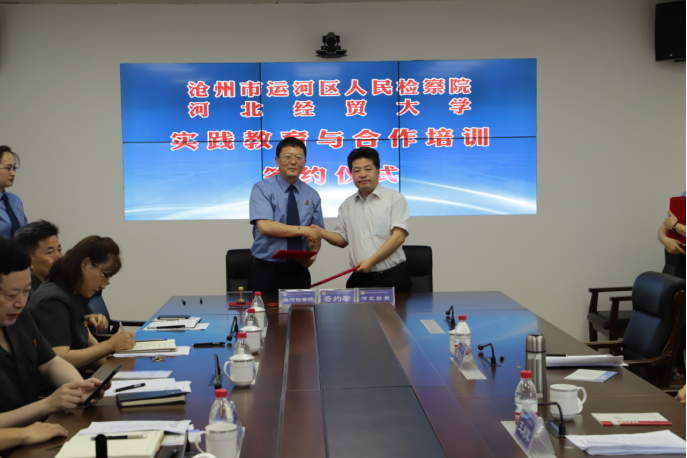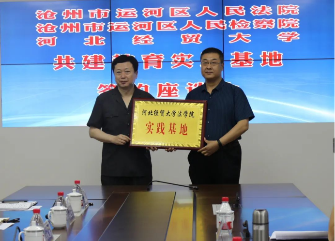 6月18日上午,36365线路检测中心入口与沧州市运河区人民检察院、运河区人民法院共建教育实践基地签约授牌仪式在运河区检察院隆重举行。运河区委常委、政法委书记樊清泉,运河区人民检察院党组书记、检察长王金瓯,运河区人民法院党组书记、院长李振勇,我校36365线路检测中心入口党委书记王继伟、院长王利军和与会各单位相关部门负责人出席了仪式。
