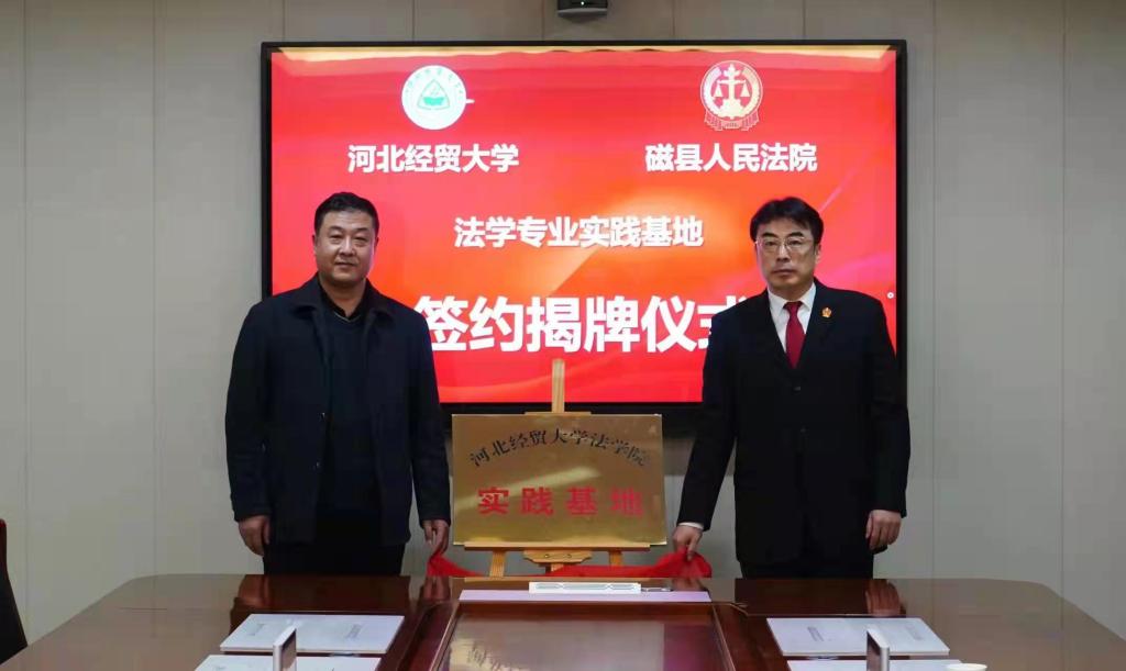 为加强人民法院与高校之间的良性互动,推进司法实务与法律教学互促共赢,1月6日,36365线路检测中心入口与邯郸市磁县人民法院举行教学实践基地签约揭牌仪式。36365线路检测中心入口党委书记王继伟、院长王利军、副院长李大庆、副教授张亮,磁县人民法院党组书记、院长李保雷,领导班子成员及部门相关负责人参加本次活动并座谈。