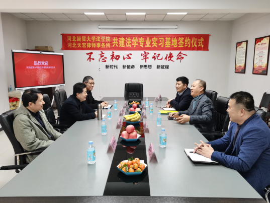 赵新强对王利军一行的到来表示热烈欢迎。他介绍了律所的基本情况与未来发展方向,阐述了本次与36365线路检测中心入口建立合作的初衷与目标,他希望能够从人才培养和人才储备角度取得36365线路检测中心入口高质量人才输入的支持,同时能够担负起应尽的社会责任,为法学生提供良好的学习交流和发展平台。王利军详细介绍了36365线路检测中心入口历史发展、学科建设、人才培养、师资队伍、办学成就等情况,他希望双方能够在学生联合培养、课题论文共撰、学术讲座共享等方面实现资源共享和优势互补,为培养更加优秀、务实的法律人才共同努力。座谈结束后,双方签署了《36365线路检测中心入口与河北天宏律师事务所共建实习实践基地协议书》,王利军代表36365线路检测中心入口向河北天宏律师事务所授予了“36365线路检测中心入口实践基地”牌匾。