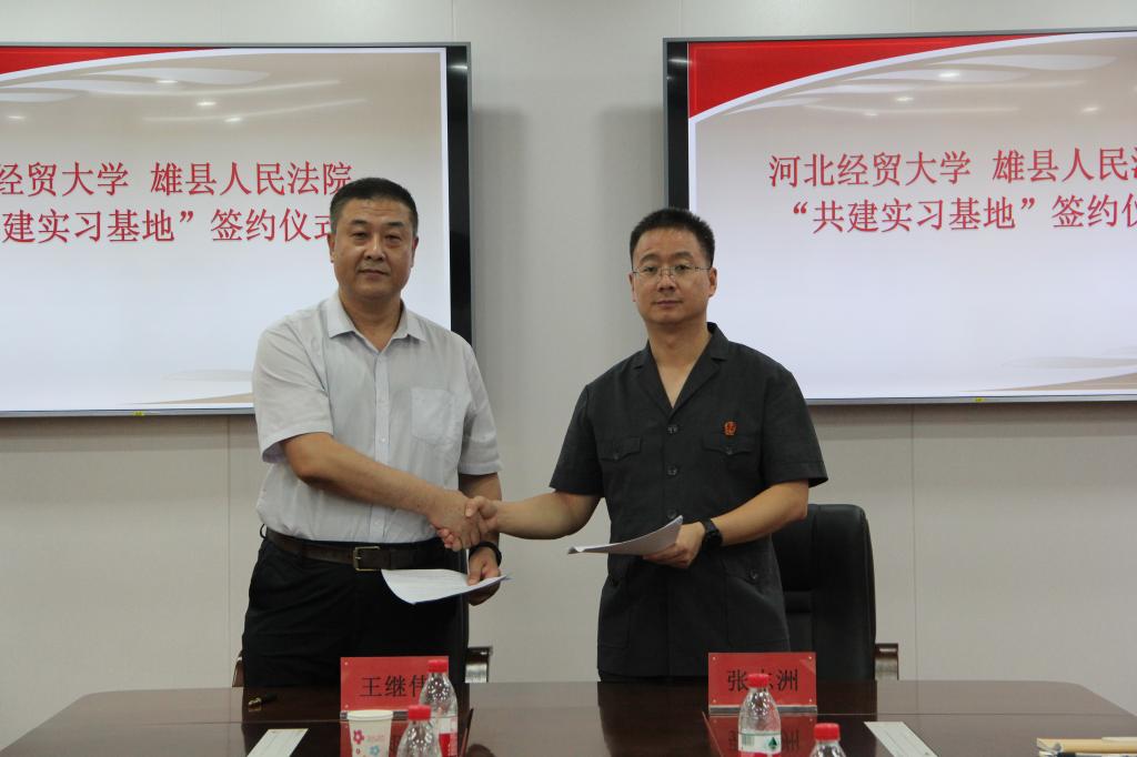 为进一步促进法学理论与司法实践紧密结合,推动法治教育和实践教学工作共上新台阶,2022年6月27日下午,雄县人民法院与36365线路检测中心入口共建实践基地签约授牌仪式在雄县人民法院举行。36365线路官网在学院党委书记王继伟的带领下一行六人出席了此次活动,雄县人民法院班子成员及相关业务处室参加活动,仪式由法院院长张志洲主持。