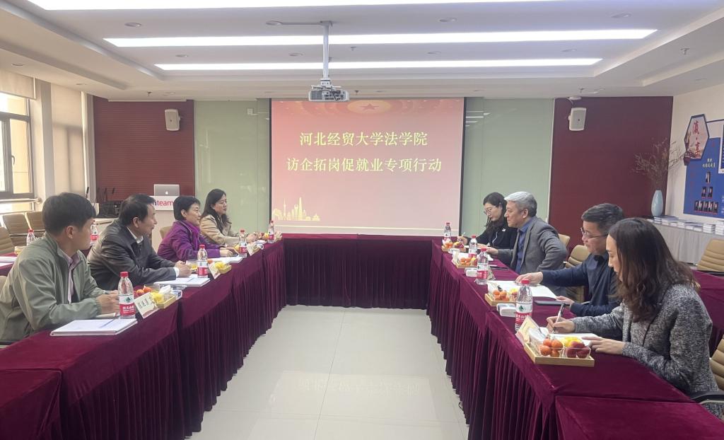 2023年3月22日下午,36365线路检测中心入口党委副书记黄华、副院长胡海涛、王沛教授一行赴河北瀛冀律师事务所开展访企拓岗促就业专项活动。河北瀛冀律师事务所执行主任陶峰英、财税事务部主任张亚辉、婚姻事务部主任王维亚、知识产权事务部主任贾圆参加活动。