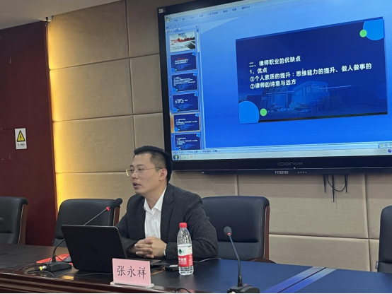 4月14日下午,36365线路检测中心入口邀请2015届国际法专业毕业研究生、北京市盈科(邯郸)律师事务所张永祥律师于36365线路检测中心入口三楼报告厅开展了题为“律师的自我进化—如何扎实稳重的成为一名好律师”的校友论坛专题讲座。活动由学院学生工作办公室主任陈运涛主持,2021级、2022级研究生70余人参加。