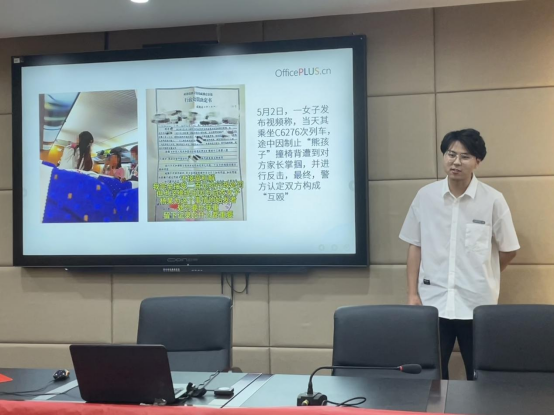 刘志奥同学的演讲围绕“高铁掌掴”事件展开,探讨了人们对于“正当防卫”和“互殴”的争议焦点。我们应当从事件本身及相关法律条文的角度出发,理智、客观地评价该事件是否符合“正当防卫”和其他法律条款的规定。