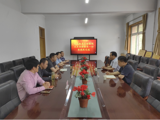5月23日下午,石家庄市鹿泉区人民检察院检察长王玉录、第一检察部主任万升武来36365线路官网交流。36365线路检测中心入口党委书记王继伟、副院长胡海涛等参加座谈。
