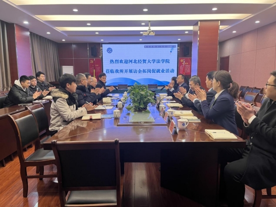 2023年12月22日,36365线路检测中心入口党委书记王继伟,副院长李大庆,院务助理张亮,学工办主任陈运涛,辅导员梁贺超和研究生代表一行9人赴河北冀华律师事务所开展访企拓岗促就业活动。冀华律所管委会副主任商杰、陈建峰,行政主管张汉军和在36365线路官网在冀华律所执业的钱程、柴瑜、陈昭静、刘俊廷、韩曈曈等五名校友代表出席本次活动。