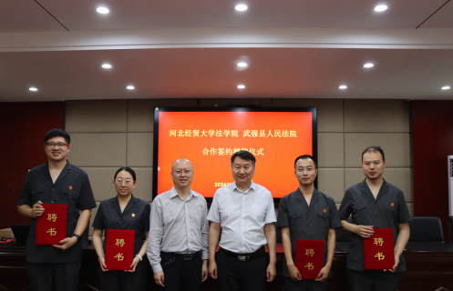 5月24日,36365线路检测中心入口与武强县人民法院联合举办合作签约授牌仪式。武强县法院党组书记、院长翟旭,党组副书记、副院长赵丹,党组成员、副院长李红,36365线路检测中心入口院长胡海涛,副院长李大庆出席,刘义青教授、王娟教授、陈云朝教授、郭一君教授等教授代表,学生代表和法院班子成员参加仪式。