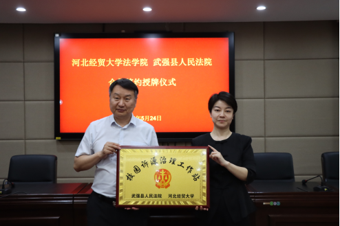胡海涛向武强县人民法院授牌教育教学实践基地