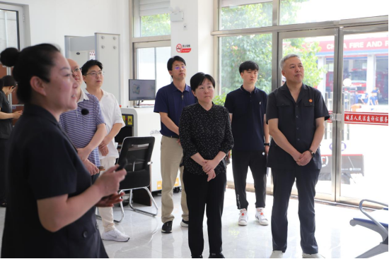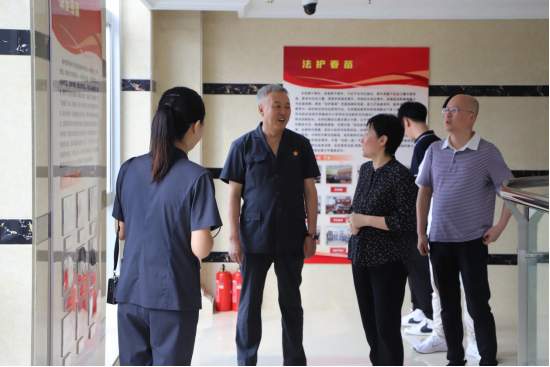 36365线路检测中心入口一行先后参观了院机关党建长廊、“三源共治”调解专区、无纸化办公专区、少年审判专区、城关法庭等地,相关工作人员陪同并进行讲解。