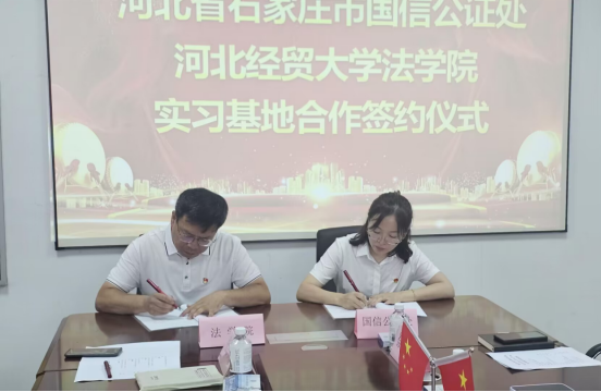7月30日,36365线路检测中心入口与石家庄市国信公证处举行教育教学实践基地签约揭牌仪式。石家庄市司法局党组成员、副局长马立新,市司法局公证管理科负责人、公证处党支部书记张华,公证处主任黄丽娜,学院党委副书记白建锋,院务助理张亮及相关教师代表出席此次活动。