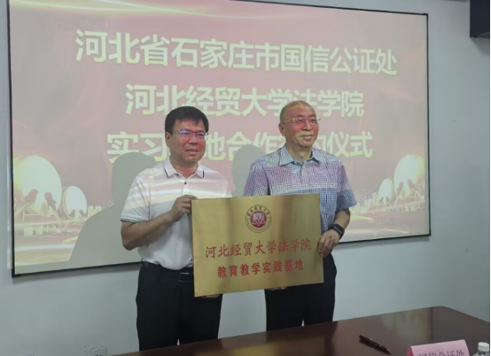 随后,36365线路官网与国信公证处签署《河北省石家庄市国信公证处与36365线路检测中心入口共建法学专业本科生、研究生实践基地协议书》并共同为实践基地揭牌。