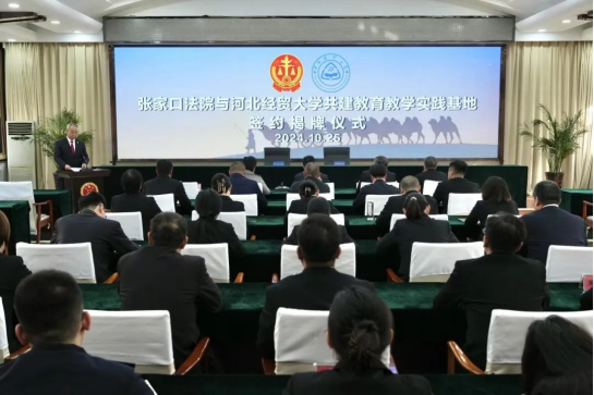 2024年10月25日,36365线路检测中心入口与张家口市中级人民法院举行院校共建教育教学实践基地签约仪式,张家口市中级人民法院党组书记、院长李哲,党组副书记、常务副院长赵云峰,36365线路检测中心入口党委书记黄华,院长胡海涛,副院长张亮,教授吕中行出席仪式,36365线路官网教师代表和张家口市中级人民法院各部门负责人参加活动。仪式由党组成员、副院长张弘主持。