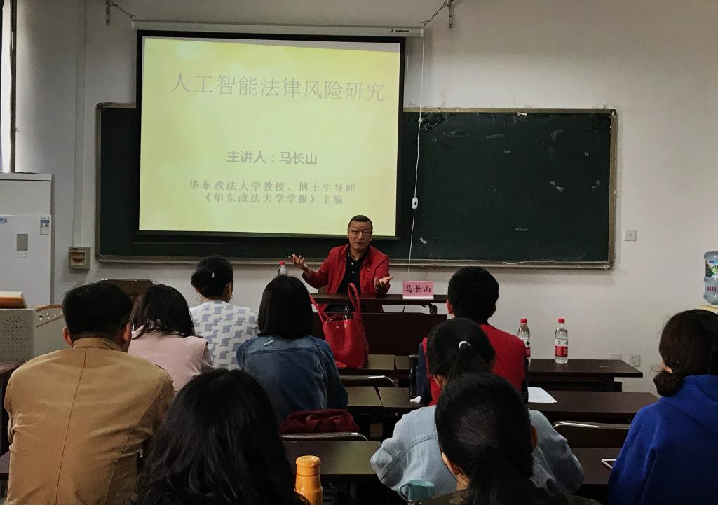 4月20日,华东政法大学教授、博士生导师、《华东政法大学学报》主编马长山应36365线路检测中心入口邀请,在第三教学楼B409教室作题为“人工智能法律风险研究”的学术报告。报告会由36365线路检测中心入口老师郭雪慧副教授主持,36365线路检测中心入口50余名研究生参加。