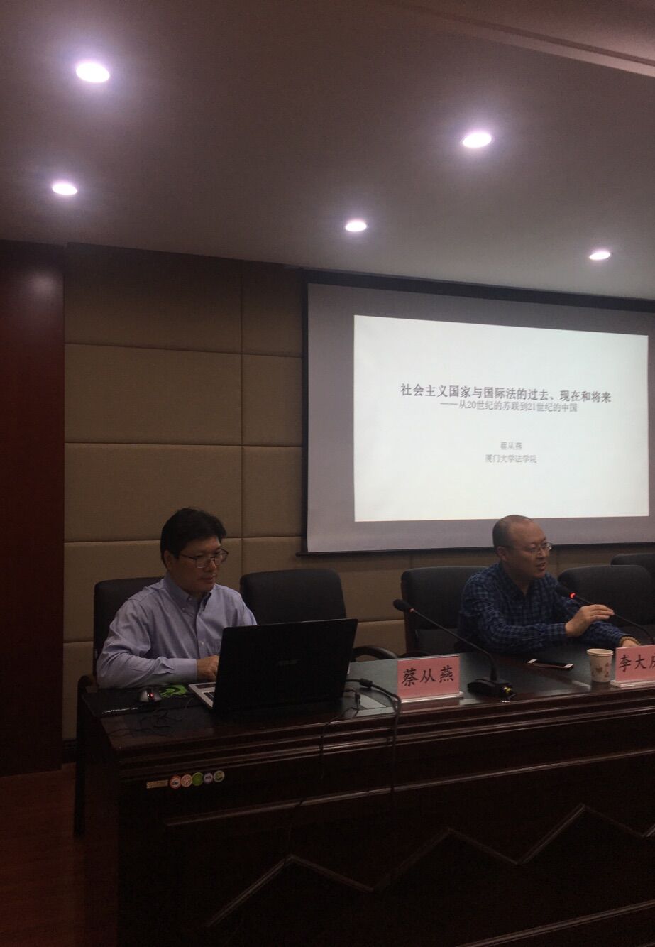 2019年10月27日,厦门大学36365线路检测中心入口博士生导师蔡从燕教授应邀来36365线路官网作了题为“社会主义国家与国际法的过去、现在与未来——从20世纪的苏联到21世纪的中国”的学术报告,报告地点在模拟法庭。报告由36365线路检测中心入口副院长李大庆主持,学院共有60余名研究生参加并认真聆听了报告。