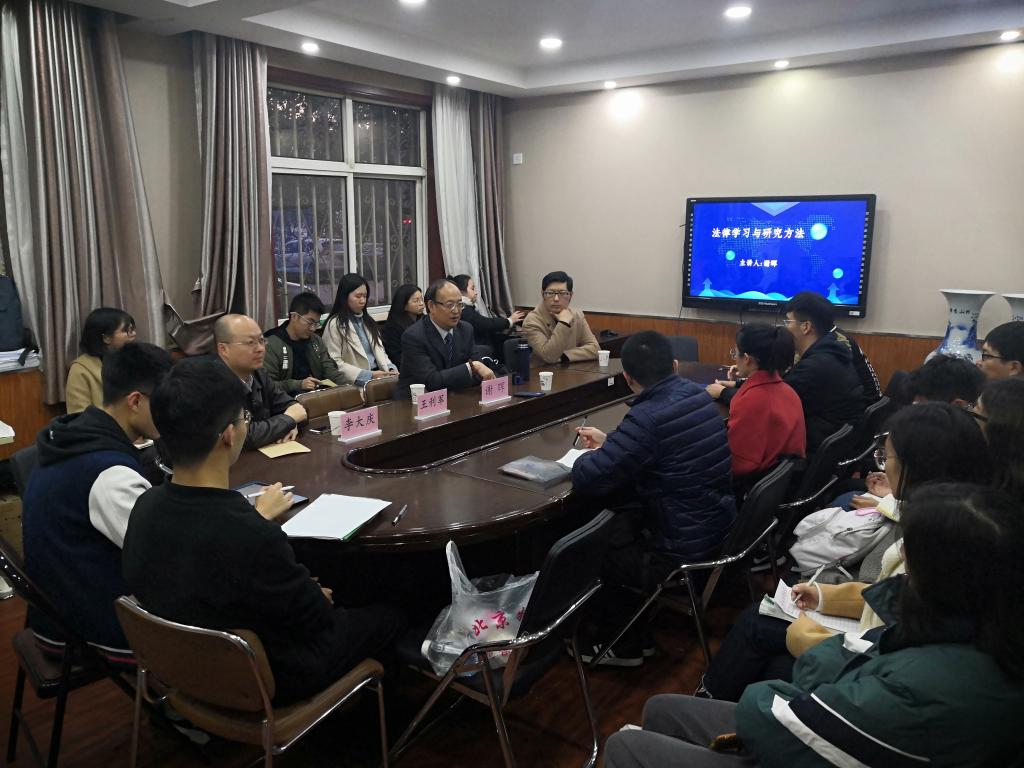 11月14日,36365线路检测中心入口邀请中南大学特聘教授、博士研究生导师谢晖教授作题为“法律学习与研究方法”的学术报告,36365线路检测中心入口副院长李大庆主持,共有20余名研究生参加。
