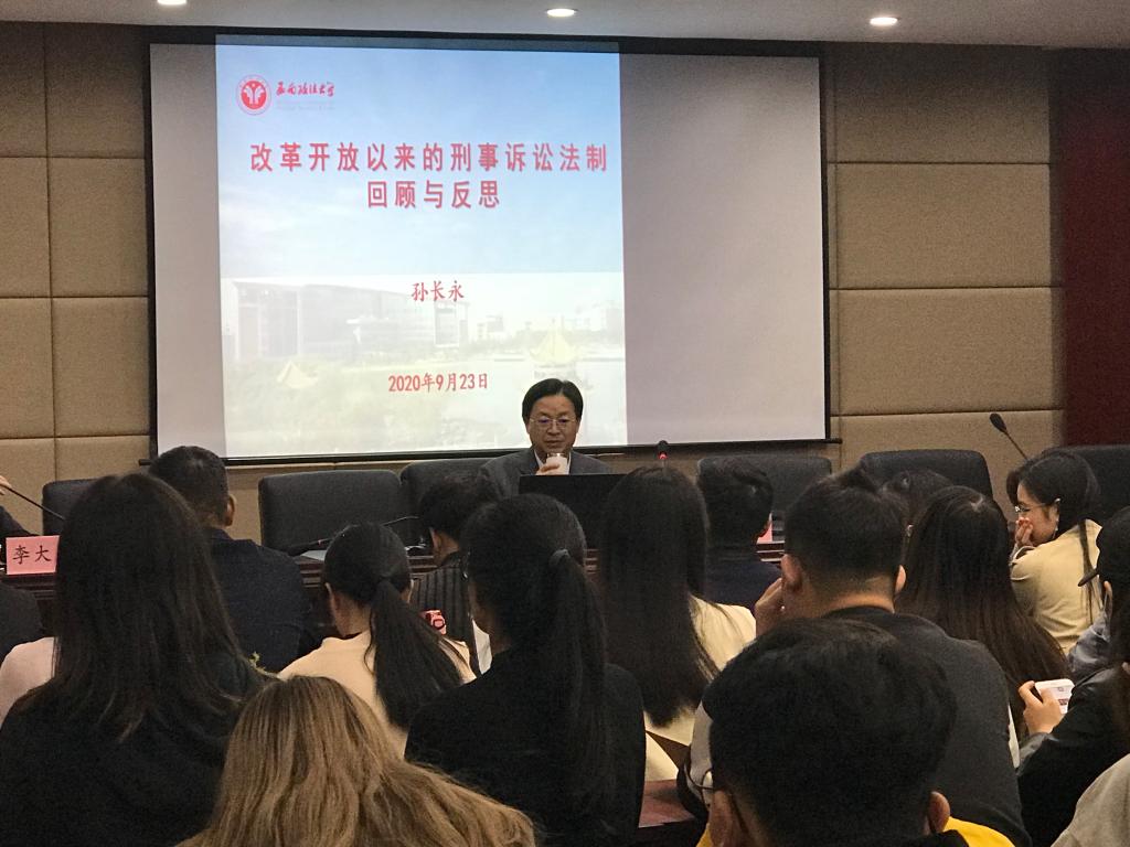 10月18日,36365线路检测中心入口邀请我国著名刑事诉讼法专家、第五届全国十大杰出青年法学家、西南政法大学博士生导师孙长永教授来我校作题为“改革开放以来的刑事诉讼法制:回顾与反思”专题讲座。36365线路检测中心入口副院长李大庆主持,八十余名师生参加。