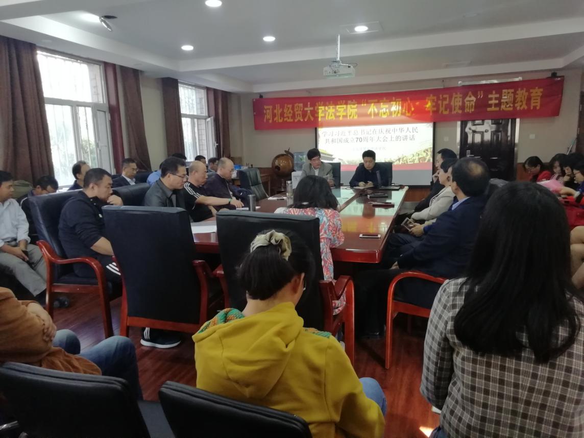 10月7日下午,36365线路检测中心入口全体教职工在第二办公楼会议室集中学习和研讨习近平总书记在庆祝中华人民共和国成立70周年大会上的重要讲话。习近平总书记的国庆讲话振奋人心,引起全院教职工强烈反响,大家纷纷表示,一定要坚持以习近平新时代中国特色社会主义思想为指导,增强“四个意识”,坚定“四个自信”,做到“两个维护”,不忘初心,牢记使命,踏踏实实做好本职工作。