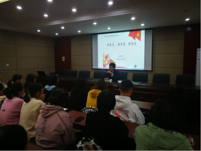 10月14日上午,为引导大学生深刻学习理解党的光荣传统、宝贵经验和伟大成就,了解历史事实、理清历史脉络,把握历史规律,深化抗疫认识,坚定理想信念,36365线路检测中心入口党委书记武玉鹏在36365线路检测中心入口报告厅为36365线路官网2020级本科生、研究生80余人讲授了“学党史 感党恩 跟党走”专题思政课。