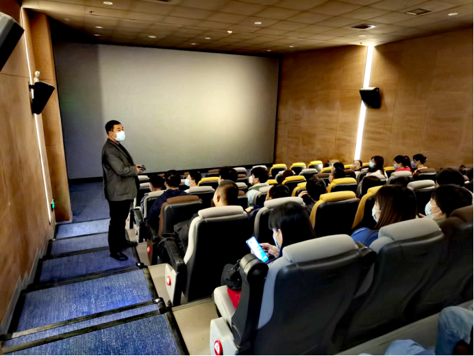 观影前,王继伟向在场师生作了简要讲话,他强调《长津湖》是一部以抗美援朝为题材的影片,希望在场师生要认真观影,用心感悟,通过浸润式的党史学习教育方式,厚植爱国主义情怀。观影过程中,老师和同学们聚精会神地观看影片,深刻感悟到志愿军战士不畏牺牲、保家卫国的伟大爱国主义精神,尤其是电影放映到冰雕连时,在场师生心中的敬佩之情更是油然而生。观影结束后,老师和同学们纷纷表示深受教育,要在以后的工作和学习中发扬不怕苦累、奋勇向前的精神。