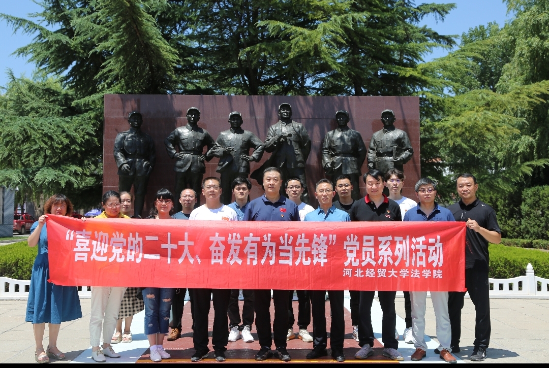 学院师生党员和涉县人民检察院一同在伟人铜像前合影