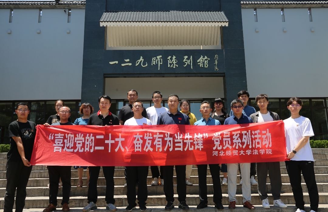 学院师生党员和涉县人民检察院一同在一二九师陈列馆前合影