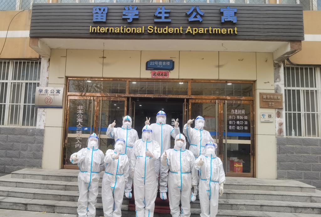 14号楼教职工志愿者合影(左二为学院正处级辅导员郑建村)