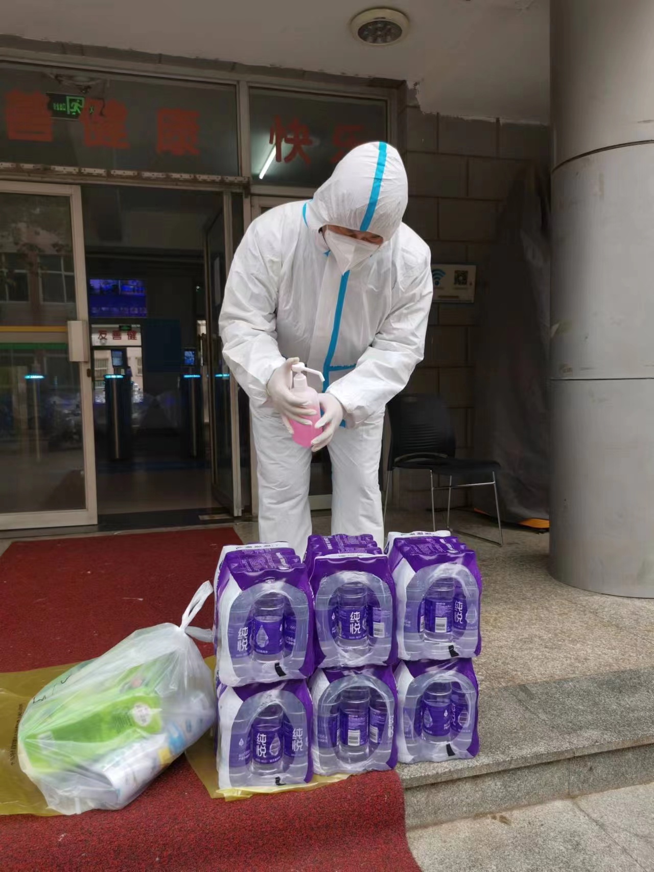 齐向晖正在搬运生活物资