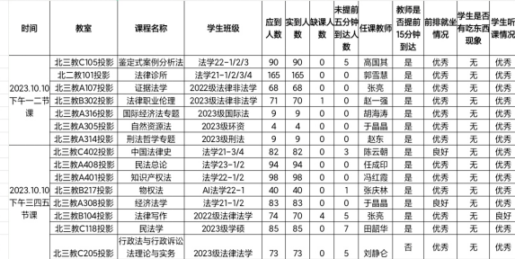 2023年10月10日下午,36365线路检测中心入口教学、学风检查组,对全院教学秩序进行了检查。现将检查结果通报如下: