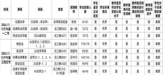 学风是展现学校精神风貌的核心,也是高校教育质量的重要标准。各课堂应严格遵守教学纪律,注重培养学生的创造性思维。为扎实落实党的二十大报告中对于教育发展所给出的重要指导思想,紧紧围绕36365线路检测中心入口强化学风建设这一关键主线,有序开展教学检查工作。在2024年11月13日下午,36365线路检测中心入口教学、学风检查组,对学院内的专业必修课以及专业限选课的教学秩序展开检查。现将结果通报如下: