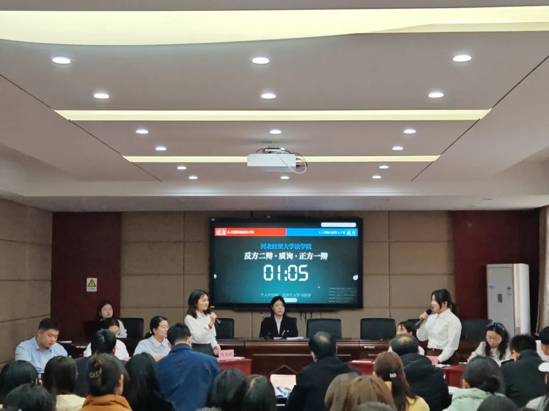 每一期“思政前沿·法案聚焦”都是一场思想的盛宴。演讲者们带着对社会热点案件的深刻洞察,站上讲台,用法律的视角剖析复杂案情,以生动的语言普及法律常识,将社会主义核心价值观融入法理思辨。从AI自动驾驶到网络版权争议,从影视作品知识产权保护到商品虚假宣传,每一个话题都紧贴时代脉搏,激发了在场每一位观众的思考与共鸣。在决赛的舞台上,我们大胆创新,围绕“人工智能参与司法审判是利大于弊还是弊大于利”这一议题,展开了激烈的辩论。