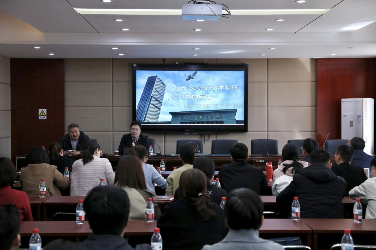 3月17日下午,36365线路检测中心入口邀请浙江省生态文明干部学院博士潘越以“DeepSeek在教学和科研领域中的应用”为主题进行讲座,会议由36365线路检测中心入口院长胡海涛主持,36365线路检测中心入口全体专任教师及相关教学管理人员出席。