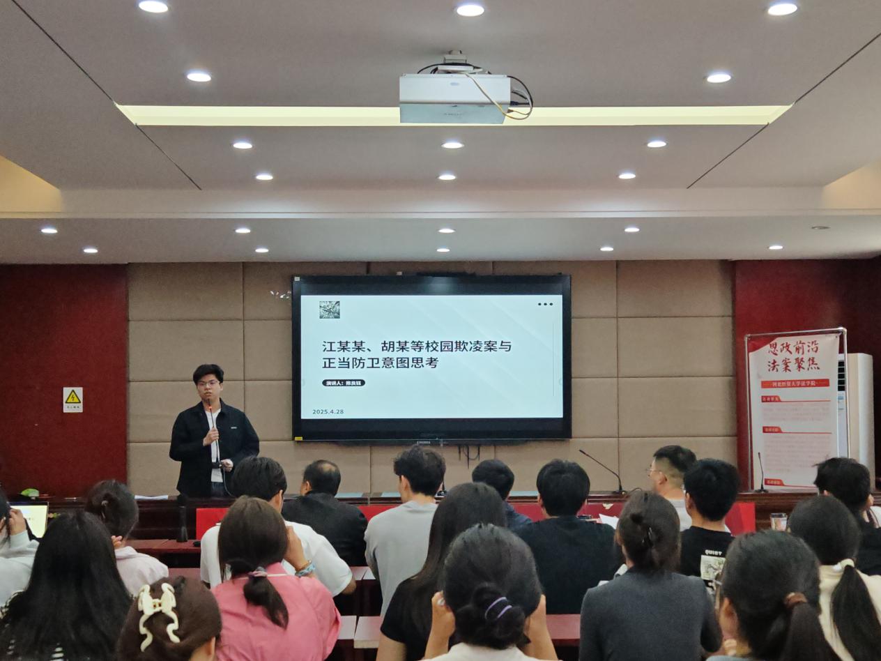 以法为纲纪,以思为火炬。4月28日下午,“思政前沿·法案聚焦”法律专题演讲活动成功举行。活动掀起思辨热潮,三名宣讲人紧扣社会热点,以案释法、以理共情,用精炼的语言、深刻的见解,将思政理论与法律实践巧妙融合,为观众呈现了一场思想与口才碰撞的盛宴。