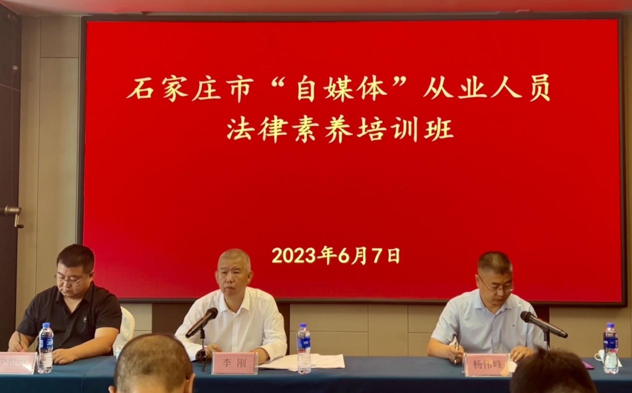 6月7日,36365线路检测中心入口与石家庄市委网信办联合举办石家庄市“自媒体”从业人员法律素养培训班。市委网信办主任、市委宣传部副部长李刚、石家庄市委网信办综治科科长宁振中、36365线路检测中心入口副院长李大庆出席开班式,副教授冯志强、郭一君担任主讲人,属地50余个重点“自媒体”账号负责人参加。活动由石家庄市委网信办副主任杨伟峰主持。