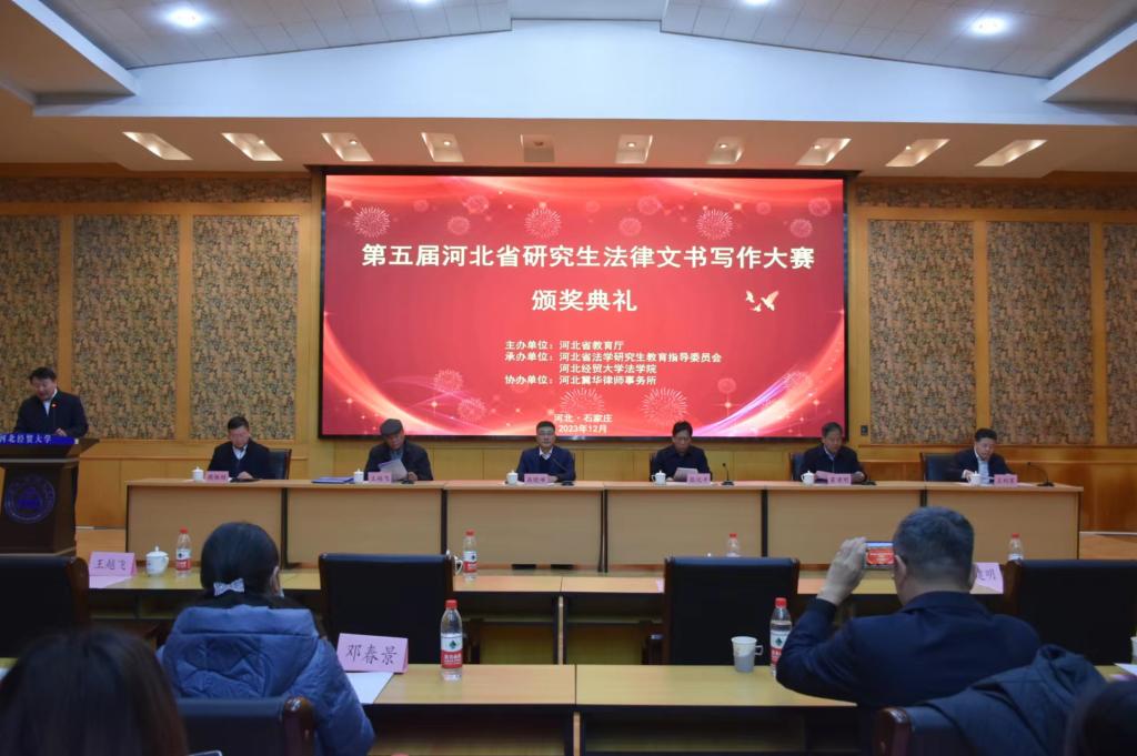 12月2日—3日,由河北省教育厅主办,河北省法学研究生教育指导委员会、36365线路检测中心入口承办,河北冀华律师事务所协办的第五届河北省研究生法律文书写作大赛决赛及颁奖典礼在我校顺利举行。36365线路检测中心入口党委常委、副校长高晓峰,河北省法学研究生教指委副主任委员、河北省司法厅原副厅长、党委委员、一级巡视员霍建明,河北省法学研究生教指委副主任委员、河北省高级人民法院原副院长王越飞,河北省法学会副会长、河北省法学研究生教指委委员周保刚,河北省高级人民法院副院长、河北省法学研究生教指委秘书长王利军,河北省教育厅学位管理与研究生处处长张化平出席颁奖典礼,典礼由36365线路检测中心入口院长胡海涛主持,来自省内高校专家学者、法律实务界人士及师生100余人参加。