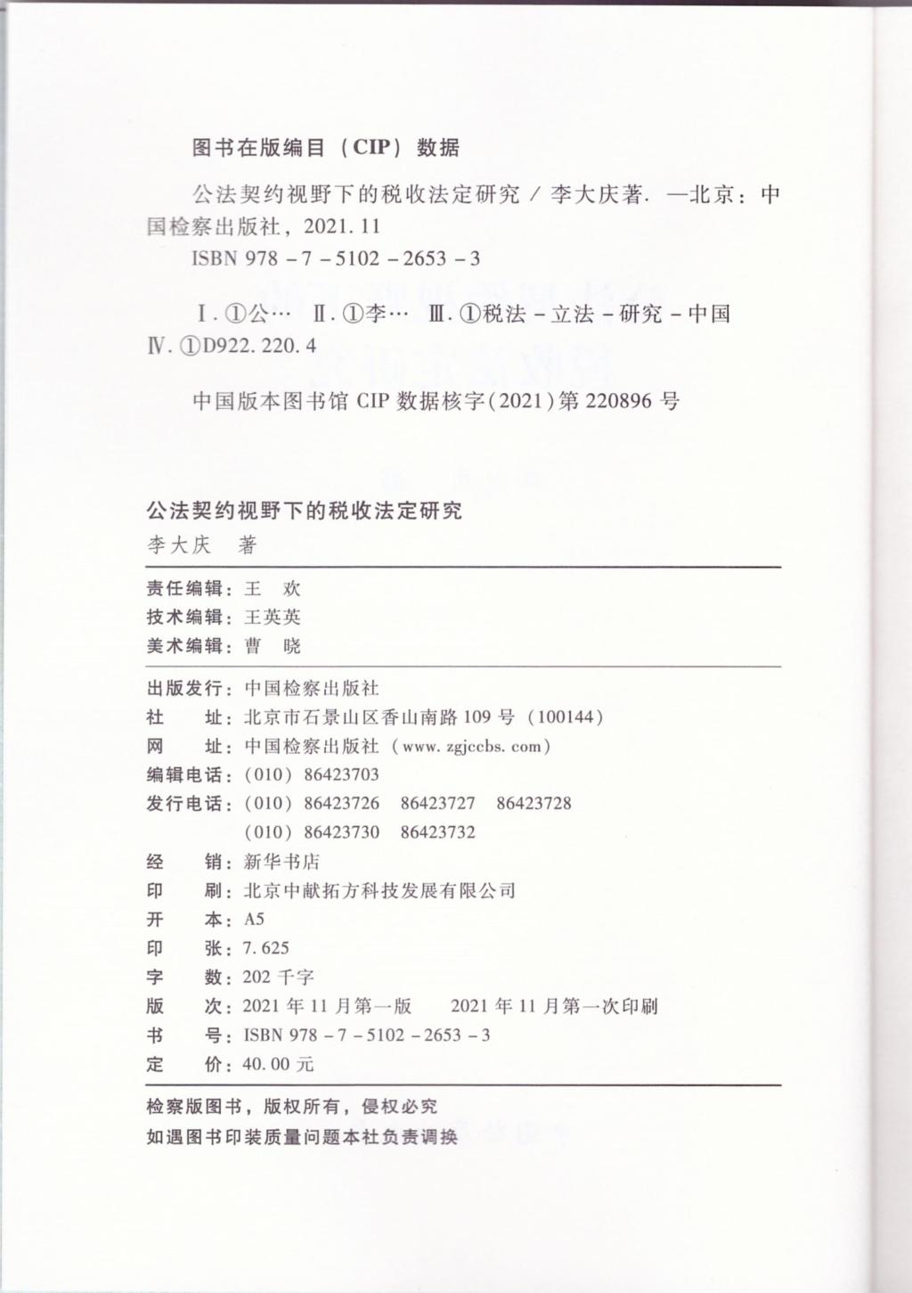 李大庆《公法契约视野下的税收法定研究》