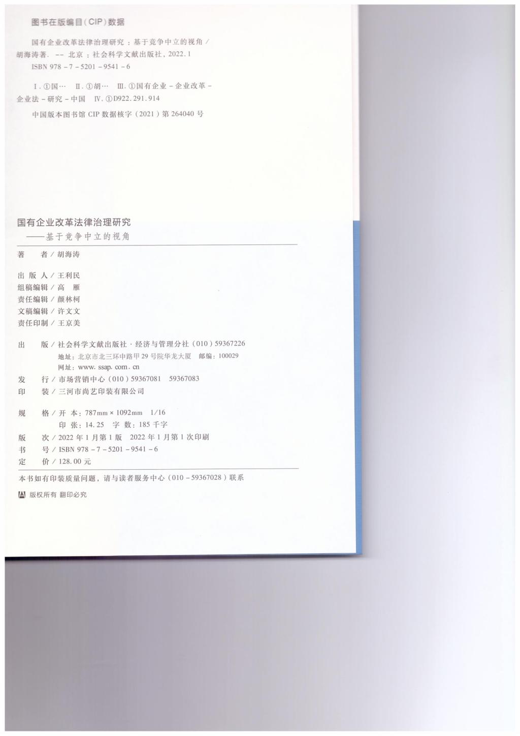 胡海涛《国有企业改革法律治理研究》