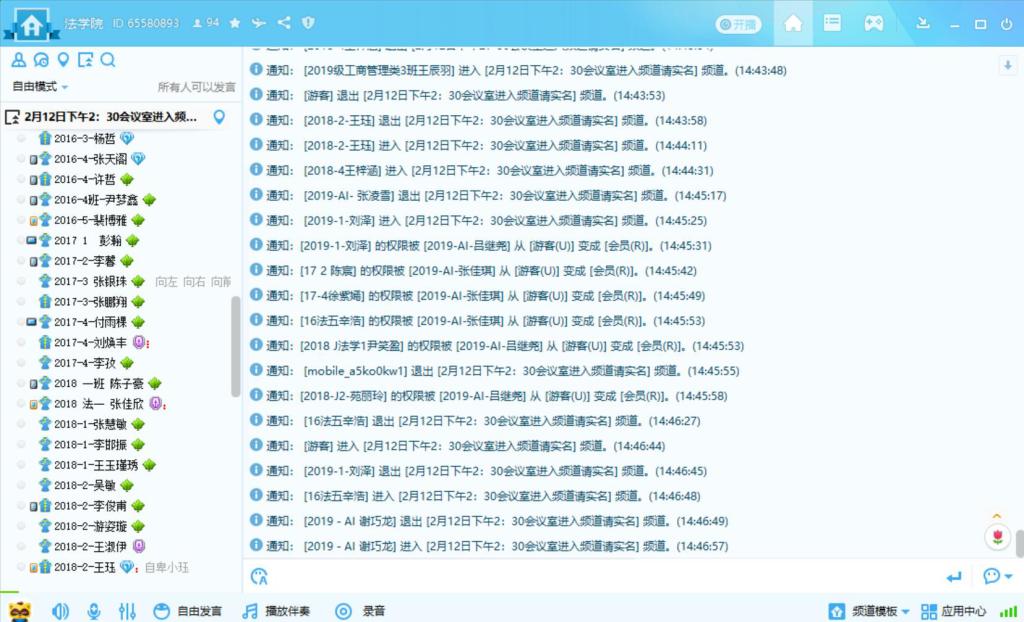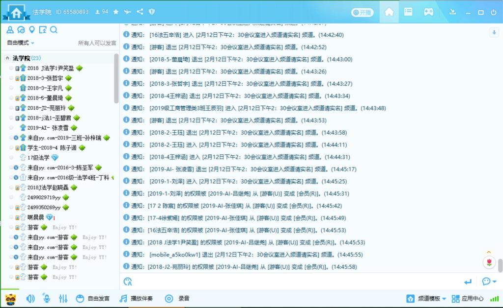 根据学校《本科教学工作安排预案》,36365线路检测中心入口结合自己的学科特色,根据学院教师和学生的实际情况开展了多种方式的线上防疫知识讲座、学生教学工作宣讲、课程讲授辅导。2月12日下午,36365线路检测中心入口师生共计98人在yy语音36365线路检测中心入口频道开展了一场别有特色的线上教育讲座。