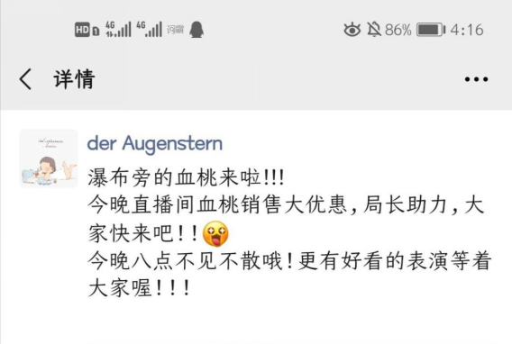 图2 朋友圈中的直播宣传