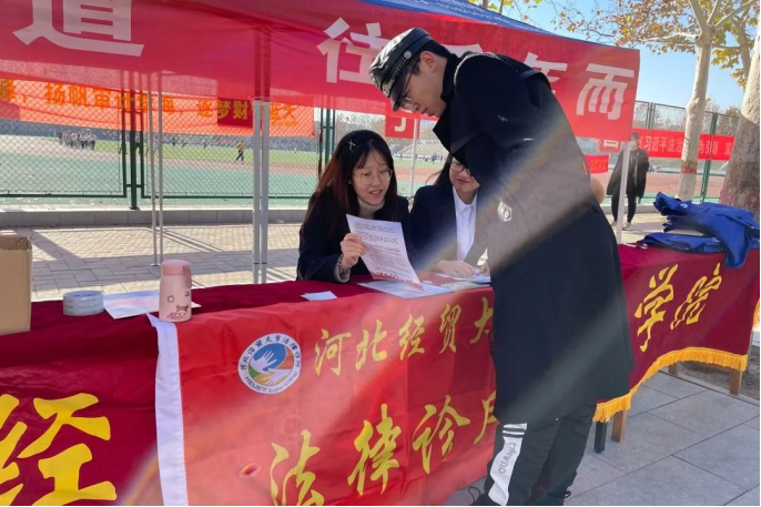 利用“宪法宣传周”的有力契机,将法治宣传纳入日常教育教学活动,向广大学生普及宪法知识,全面提高学生法治意识,培育懂法、敬法、守法的未来公民。11月29日-12月5日期间,36365线路检测中心入口组织学生开展了宪法知识竞赛、宪法日晨读、宪法宣誓、宪法传单发放等活动。在抓好“宪法宣传周”活动的同时,以特色品牌活动,推动普法宣传常态化,全年无间断面向广大学生开展各类法律知识竞赛,如“依法明辨”校园辩论赛、“我身边的宪法”演讲比赛等。在第六届河北省大中小学生“学宪法 讲宪法”大赛决赛中,36365线路检测中心入口荣获演讲比赛组一等奖、知识竞赛组二等奖的荣誉。此外,积极开展进校园、进社区“普法志愿者法治文化基层行”活动,先后走进经贸附中、走进美景东方小区进行普法宣讲,发放宪法单行本、宣传材料,提供法律咨询等。