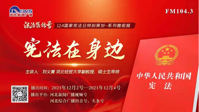 宪法的生命在于实施,宪法的权威也在于实施。12月1日—5日,36365线路检测中心入口联合河北广播电视台以微信视频号、微博、抖音等新媒体形式推出,“法治集结号——宪法在身边”国家宪法日宣传专栏,向社会群众讲述身边的宪法,推动宪法实施入心化行。其中,36365线路检测中心入口副教授刘义青关于“宪法是什么味道”的短视频,当日浏览量达10万次。12月4日,36365线路检测中心入口教授田韶华受邀做客由中共河北省委宣传部、河北省司法厅、河北省法宣办主办,中共石家庄市委宣传部、石家庄市司法局、石家庄市普法办,石家庄广播电视台、西柏坡纪念馆联合承办的“走进西柏坡——2021年“12.4”国家宪法日主题宣传活动”新闻直播间,以“民法典与人们的生活息息相关”为话题与电视台主持人一同作直播解说,共同讲述良法善治如何护航民生福祉。