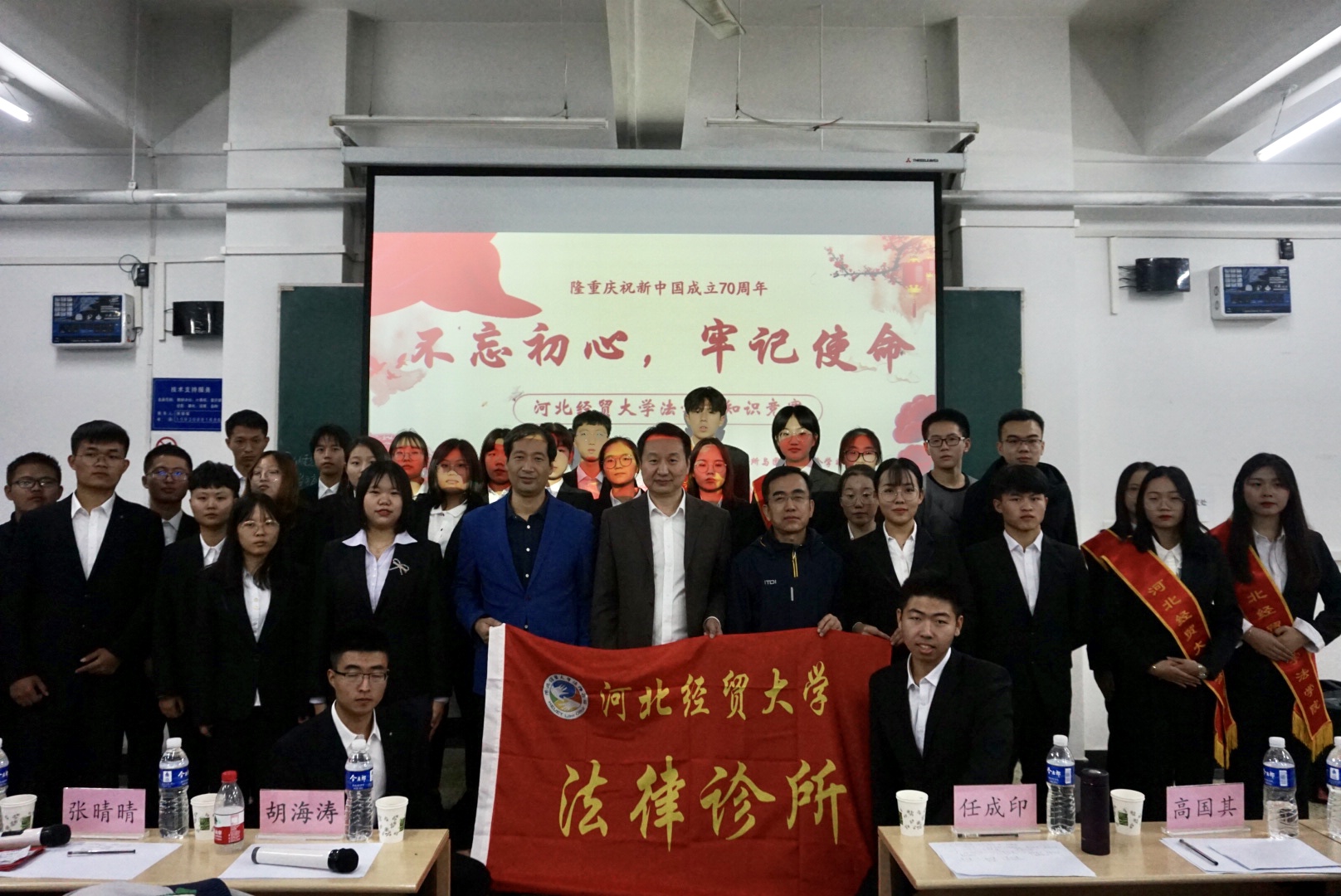 2019年10月13及14日晚,36365线路检测中心入口团委学生会与法律诊所于B501教室联合举办了以“不忘初心、牢记使命”为主题的法律知识竞赛。36365线路检测中心入口副院长胡海涛,任成印老师,高国其老师与以及大一大二年级各班代表100余人参加。