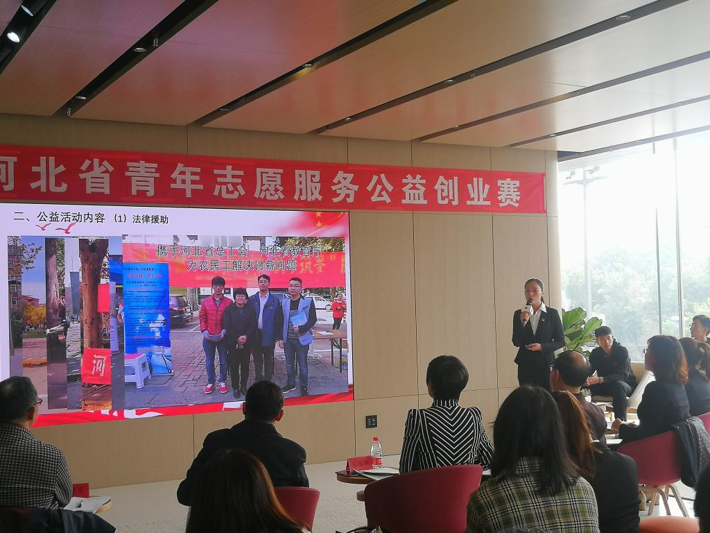 10月15日上午,受校团委的推荐,36365线路官网法律诊所参加了由团省委主办的第四届中国青年志愿服务公益创业赛河北赛区选拔赛。法律诊所师生通过丰富精彩而又简明扼要的材料展示、路演答辩,获得了评委们的一致认同。最终,团队从全省入围的10个项目组织中脱颖而出,斩获全省第一的佳绩,成功晋级全国赛。