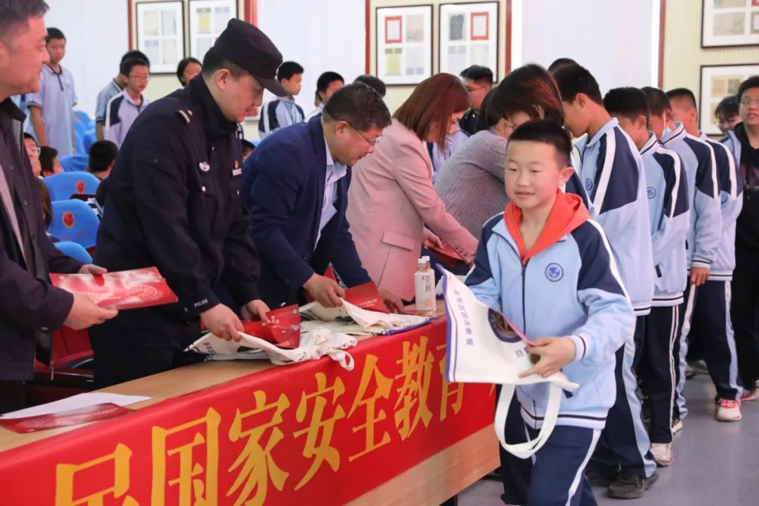 活动结束后,在场领导和工作人员为聆听宣讲的同学们送出精美的“国家安全”主题宣传手提袋和水笔。