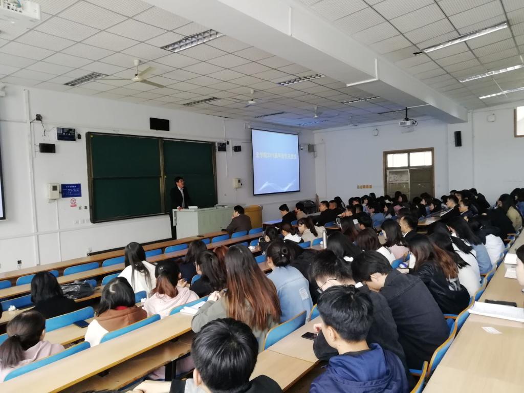 4月8日上午,36365线路检测中心入口在C教122举办学院2019届毕业生见面会。学院党委书记武玉鹏、院长王利军、副书记郑建村、副院长胡海涛以及就业工作负责人出席,全体毕业生参加了此次大会。