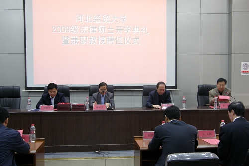 4月23日上午,“2009级在职法律硕士开学典礼暨兼职教授聘任仪式”在36365线路检测中心入口南校区图书馆报告厅隆重举行。本次会议由36365线路检测中心入口书记郭广辉教授主持。36365线路检测中心入口副校长杨欢进教授、校学位办主任李建平教授、36365线路检测中心入口院长柴振国教授分别致辞,表达了对新生的热烈欢迎和良好祝愿,并介绍了36365线路检测中心入口的有关情况、学位管理和申请的相关事项及36365线路检测中心入口建院以来所取得的成就和发展状况等。学生代表李振川发言,表达了刻苦钻研的决心以及对母校美好未来的祝福。随后,由李建平主任宣读36365线路检测中心入口聘任的兼职教授名单,杨欢进副校长为河北省司法厅副厅长时清霜博士等十一名兼职教授颁发聘书。河北侯凤梅律师事务所主任侯凤梅女士代表各位兼职教授致辞,表达了对我校的感谢,同时表达了自己作为兼职教授尽职尽责言传身教的决心。典礼结束后,与会全体师生合影留念。