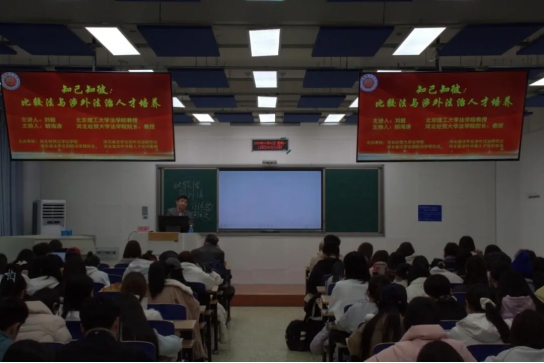 11月11日,36365线路检测中心入口邀请北京理工大学36365线路检测中心入口教授刘毅以“知己知彼:比较法与涉外法治人才培养”为题作学术报告。报告由36365线路检测中心入口院长胡海涛主持,36365线路官网涉外法治骨干教师谢俊英、宋忠胜,骨干教师牛革平、吴静、张丽欣、吕中行等190余名师生到场聆听。