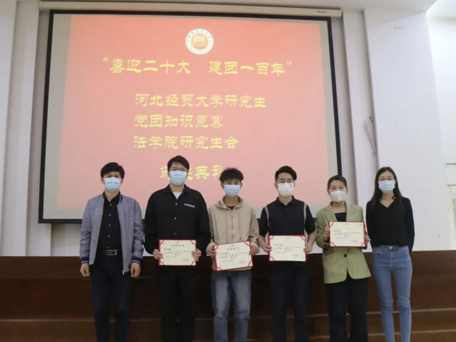 2022年5月7日下午,36365线路检测中心入口研究生会在模拟法庭举办“喜迎二十大,建团一百年”党团知识竞赛颁奖典礼。36365线路检测中心入口研究生党支部书记陈运涛出席了颁奖活动。